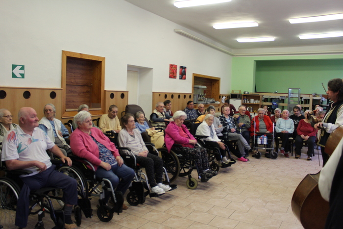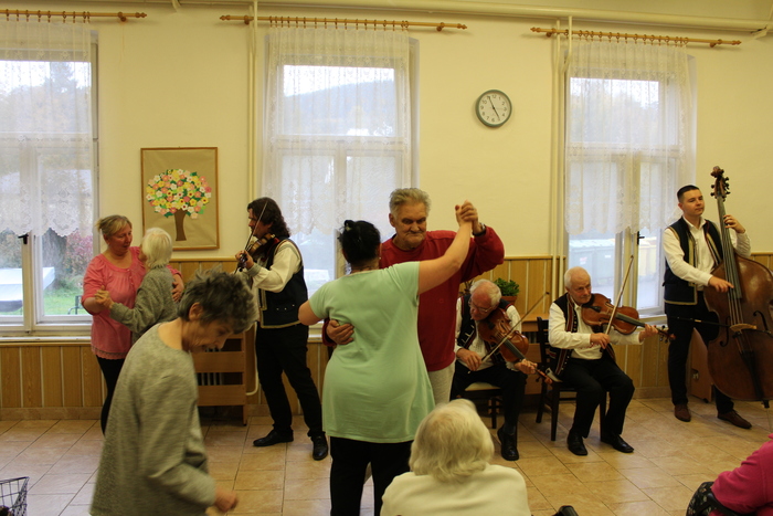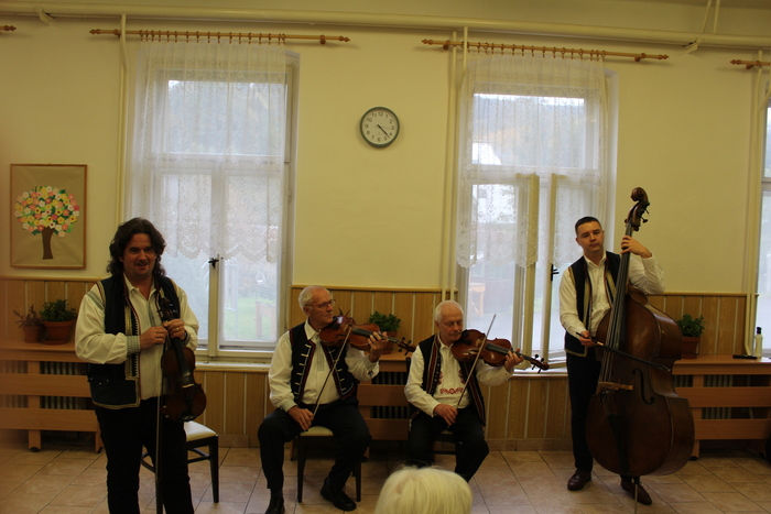V úterý dne 24. 10. 2023 k nám zavítala rodinná cimbálová skupina Vedrovci. Jedná se o skupinu z Opavy, která má kořeny na jihu Moravy. Z důvodu nemoci jednoho z členů přijeli bez cimbálu. To ale vůbec nevadilo, a i tak jsme si to náramně užili. Společně jsme si zazpívali a zatancovali na lidové a moravské písničky. Moc děkujeme za zpříjemnění odpoledne a těšíme se na další setkání.