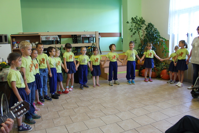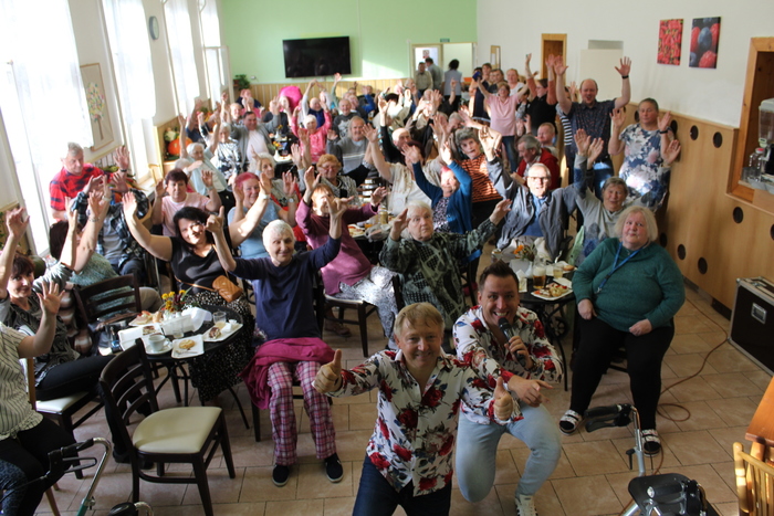 V úterý jsme oslavili Den seniorů, který připadá na 1.října. Přípravy ale začaly již v pondělí, kdy jsme dopoledne společně se seniory připravili nepečené Tiramisu. V úterý jsme náš den začali ukázkami písniček z pohádek a společně jsme hádali jejich názvy. Následovalo moc krásné vystoupení dětí z Mateřské školy ve Svahu z Vrbna pod Pradědem. Paní učitelky si s dětmi připravily pěvecké a taneční vystoupení. Následovala menší přednáška o hudebních nástrojích, které jsme si pak mohli vyzkoušet a společně jsme si zazpívali. Hlavní hřeb naše dne ale začal v 15:00, kdy v naší jídelně vystoupila hudební skupina Duo Jamaha. Pánové Alfons a Marian Kotvanovci k nám přivezli hodinu a půl krásného vystoupení. Společně s nimi jsme zpívali, tančili a moc jsme si to užili. Nesměla samozřejmě chybět autogramiáda a společné focení. Tradičně nechybělo ani drobné pohoštění, které připravila společně kuchyně s aktivizací a našimi seniory.