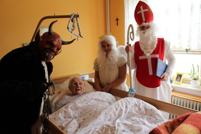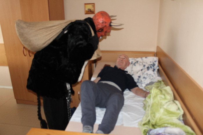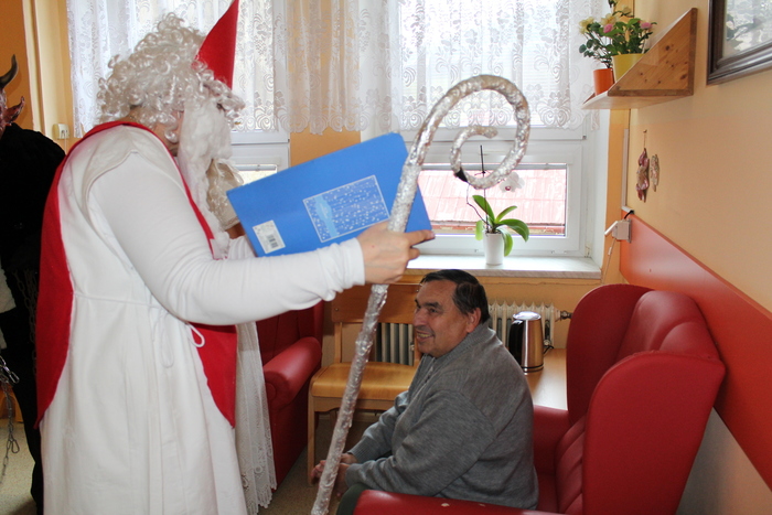 Mikuláš, Anděl a Čert nechodí jen k dětem. Dorazili také k nám, obtěžkáni balíčky a vydali se do všech pokojů i kanceláří. A věřte, že to bylo velmi emotivní a krásné. Senioři byli velmi příjemně překvapeni, někteří dojatí a párkrát se objevili i slzičky radosti. Jsme všichni moc rádi, když se nám podaří vykouzlit úsměvy a dobrou náladu na tvářích našich uživatelů. Moc děkuji Mikuláši, Andělovi a Čertovi za jejich výpravu do domova, dále všem pracovníkům, kteří se zapojili a kuchyni za přípravu balíčků.