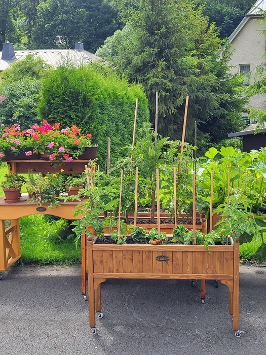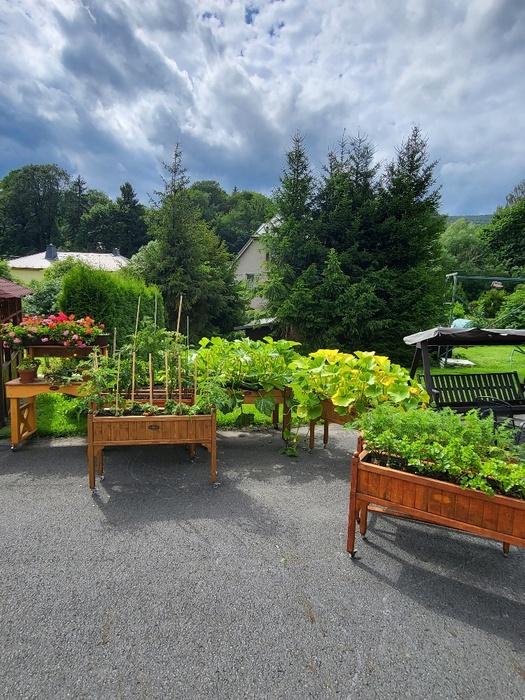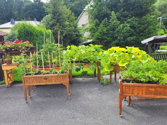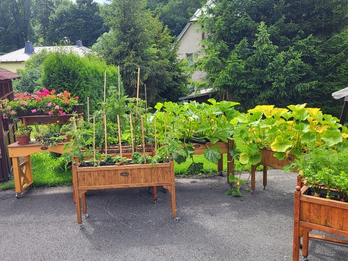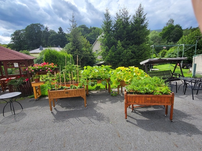 Již od prvních jarních měsíců se naši senioři společně s děvčaty z aktivizace začínají starat o mobilní záhonky, které připravují na nadcházející sezónu. Jejich práce a nasazení je nám všem odměnou ať už jen pohledem na krásně obrostlé záhony, nebo i drobnou ochutnávkou. Na našich záhoncích najdete cukety, mrkev, celer, cherry rajčátka, okurky, hlávkový salát, 12 druhů bylinek. Letní zahrádka je velmi oblíbenou aktivitou našich seniorů. Vše co se vypěstuje, se připraví pro naše uživatele.