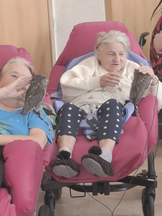 Soví návštěva se stala pro naše seniory opravdu nezapomenutelným zpestřením každodenního života a krásnou ukázkou toho, že radost může přijít i v podobě dvou tichých, moudrých opeřenců.